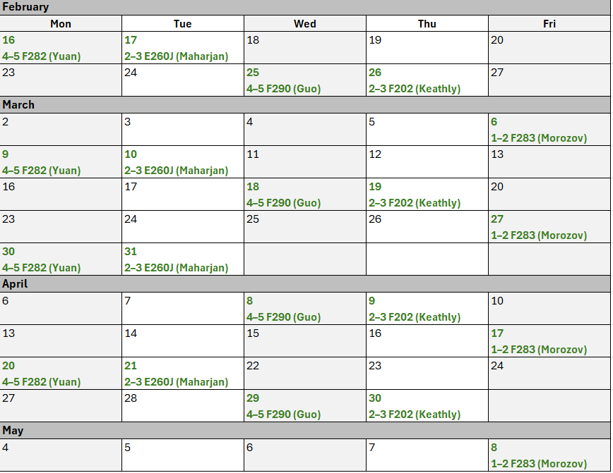 TBD —— April 15 (Wed), 3:30 PM - 5 PM, Room: F219